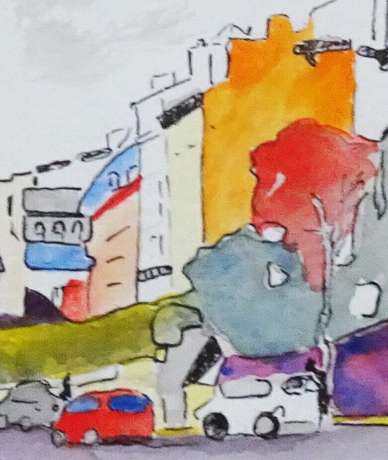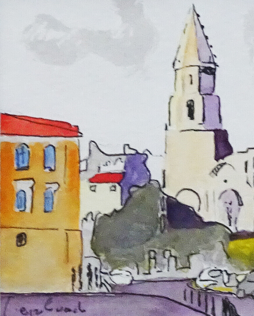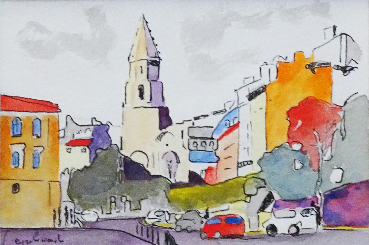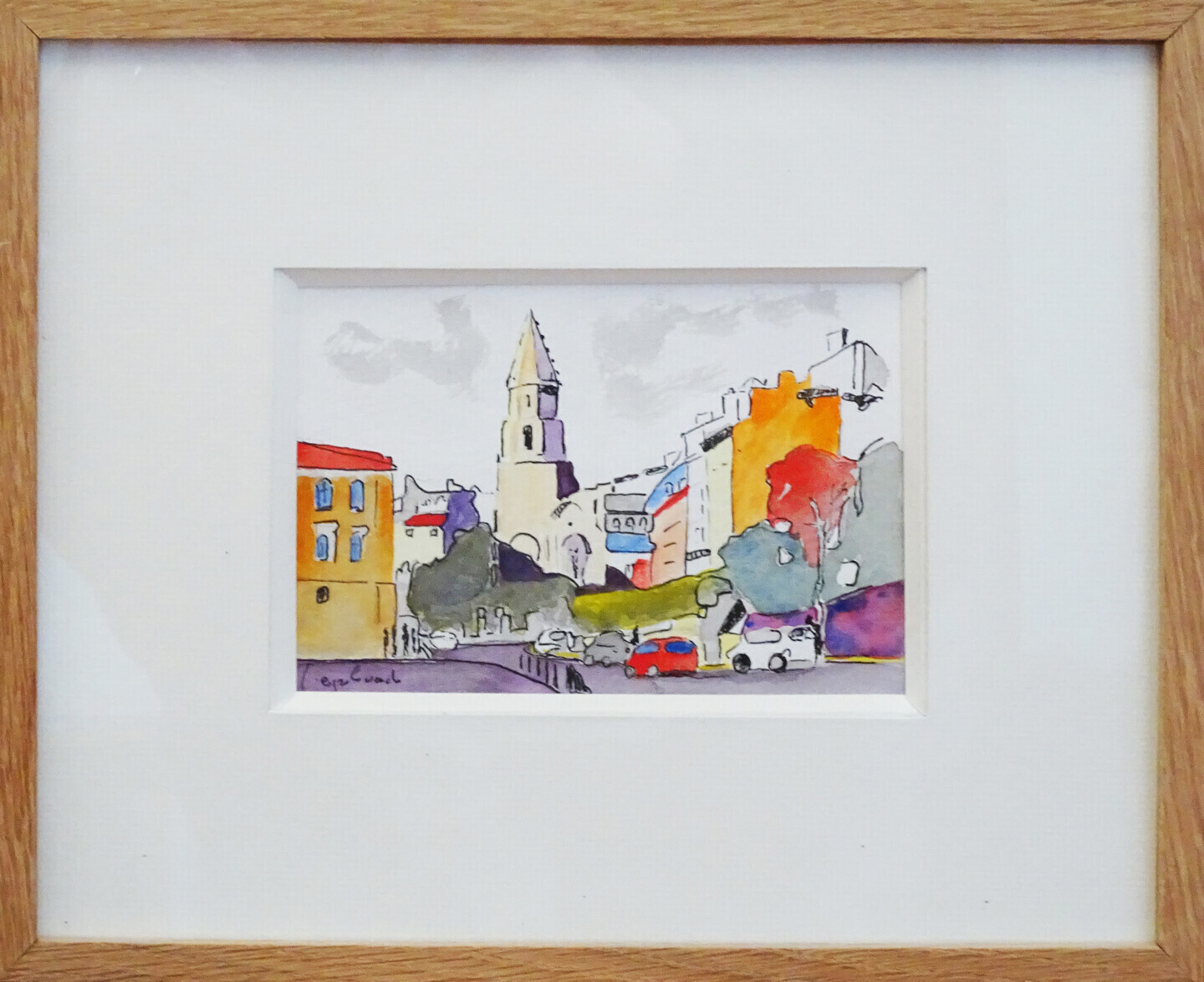 Aquarelle. Les Accoules est un quartier du vieux Marseille situé sur la rive nord du Vieux-Port, au sud du quartier du Panier.