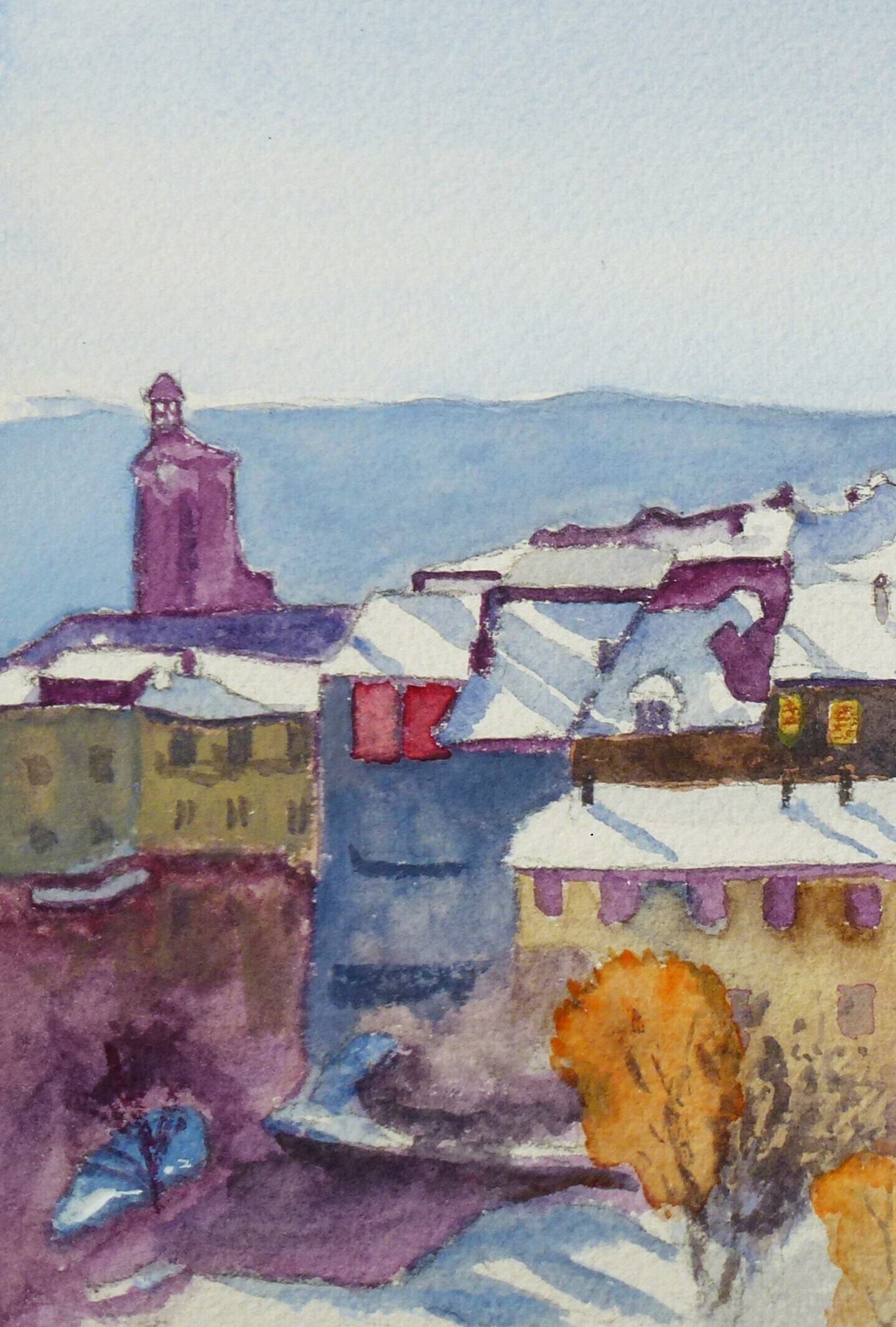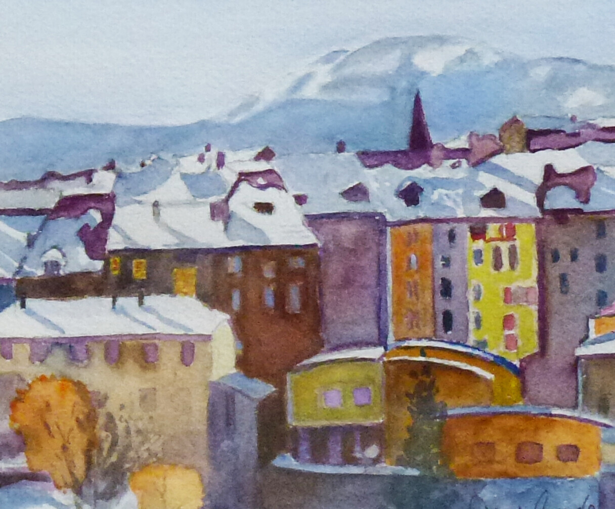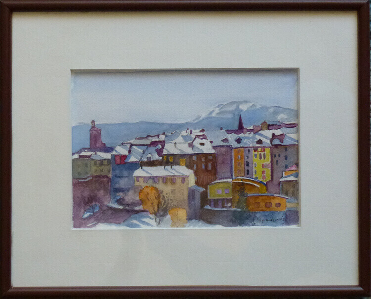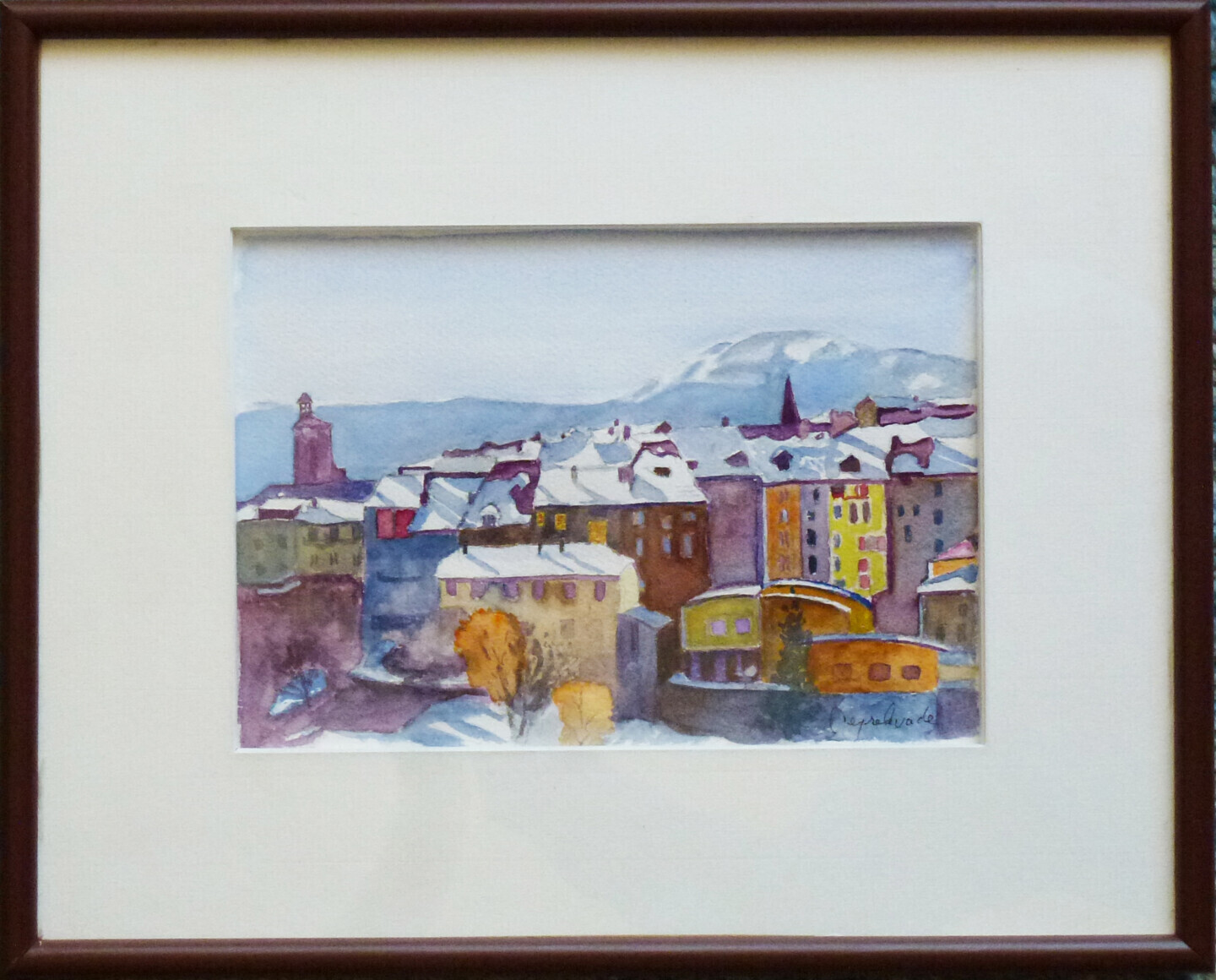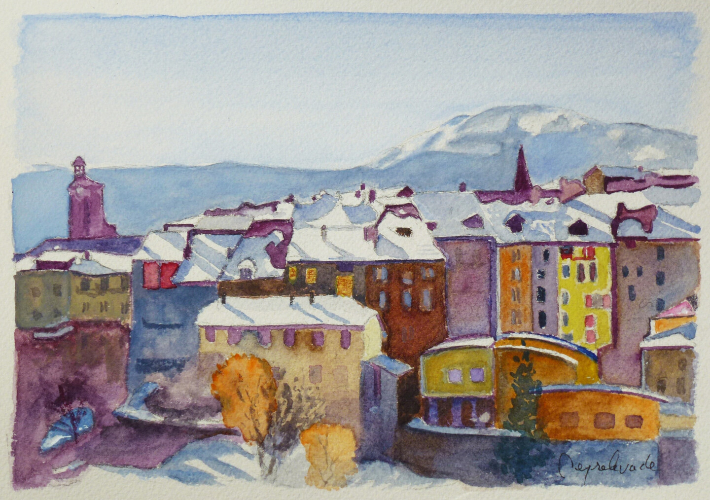 Seyne les Alpes: toits enneigé dans une lumiere d'après-midi. Vendu avec cadre.